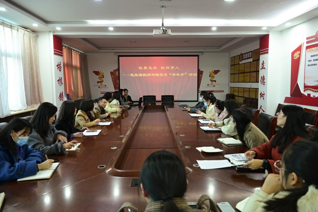 为扎实推进习近平新时代中国特色社会主义思想主题教育,整合教育资源,充分发挥思政课教师和辅导员在大学生思想政治教育中优势互补作用,提升协同育人合力,12月6日下午,bat365在线中国官网登录入口和学工部联合举办思政课教师与思想政治辅导员“手牵手”活动,学工部、bat365在线中国官网登录入口相关负责人,部分系部辅导员、思政课教师参加座谈会。