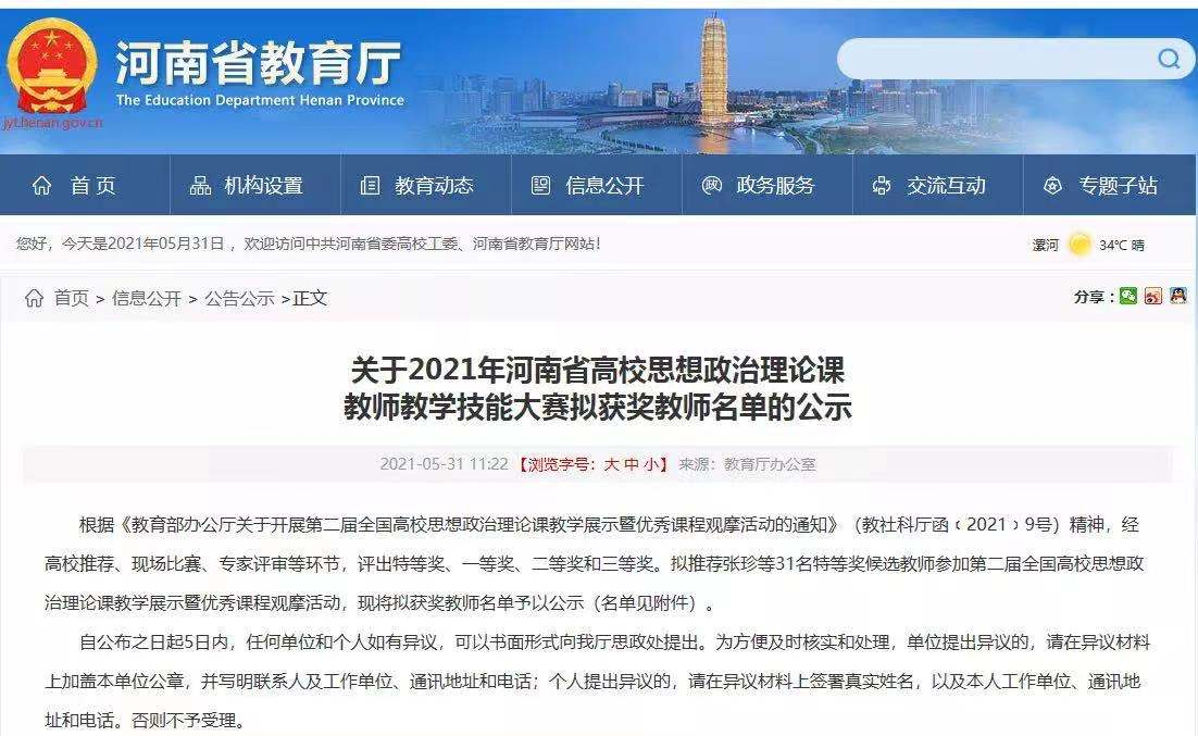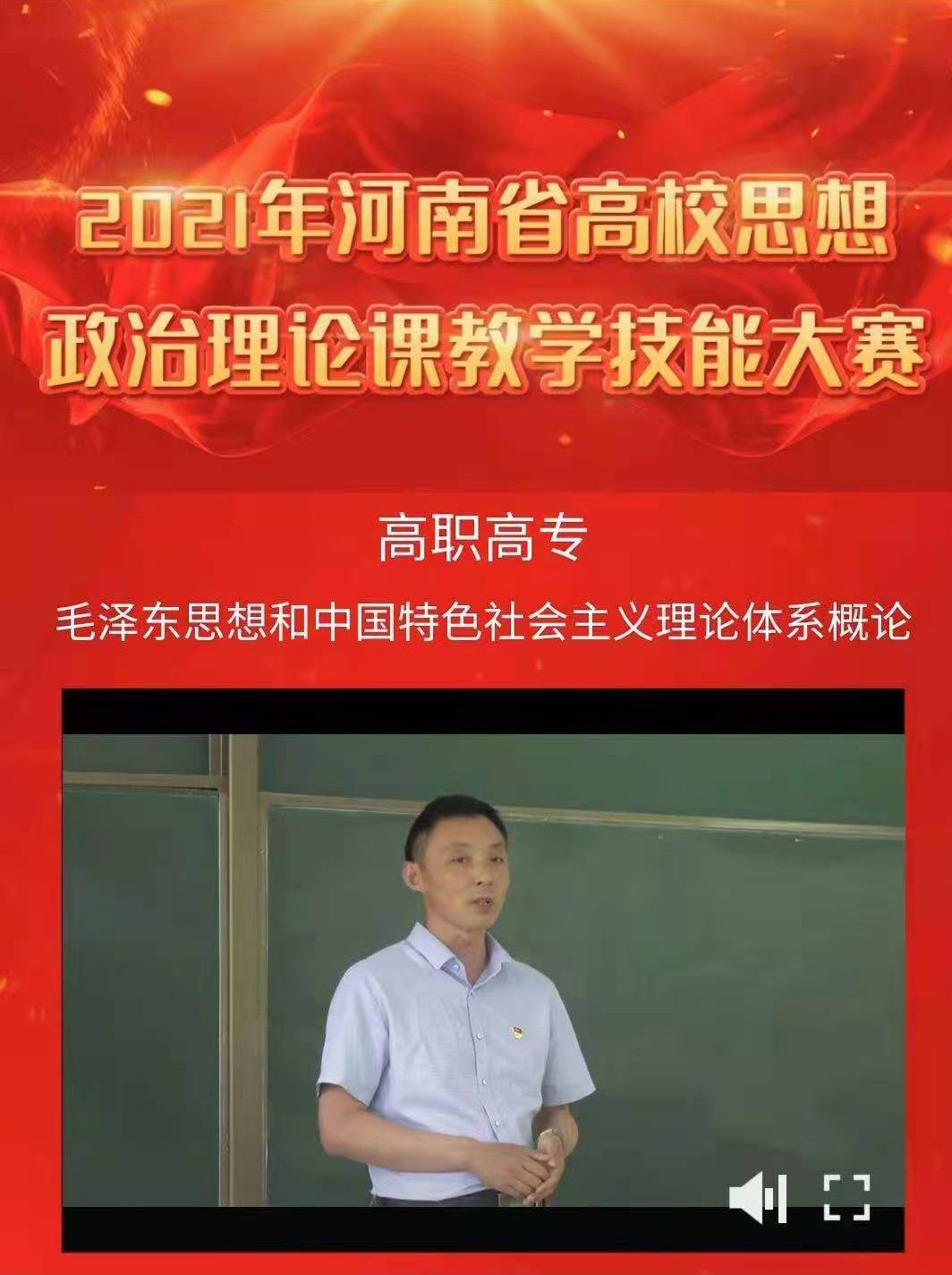 河南省高校思想政治理论课教师教学技能大赛是根据《教育部办公厅关于开展第二届全国高校思想政治理论课教学展示暨优秀课程观摩活动的通知》的精神,举办的河南省高校思想政治理论课教师的教学技能大赛。大赛经高校推荐、现场比赛、专家评审等环节,评出特等奖、一等奖、二等奖和三等奖。拟推荐特等奖候选教师参加第二届全国高校思想政治理论课教学展示暨优秀课程观摩活动,bat365官网获得特等奖的李迎安老师将代表河南省继续奔赴国家级赛场!